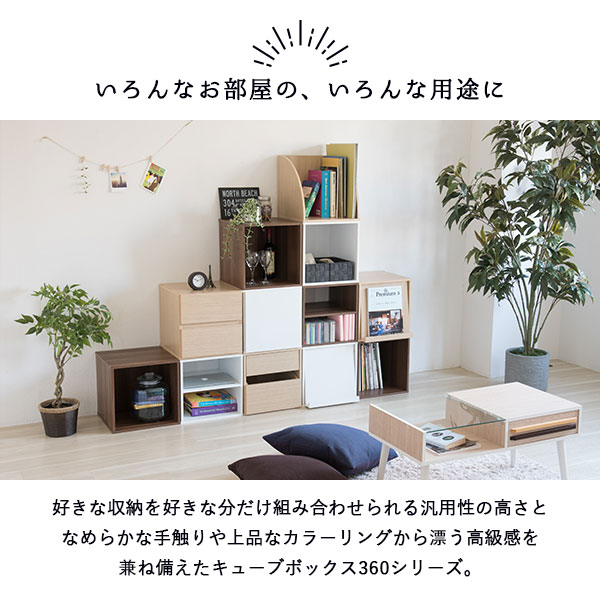 収納ボックスカテゴリはこちらキューブボックス360ラインナップ 棚なし 棚付きフラップ扉 棚付き開き扉 2段引き出し 棚付き背面オープン フラップ引き出し マルチスタンド キャスター台