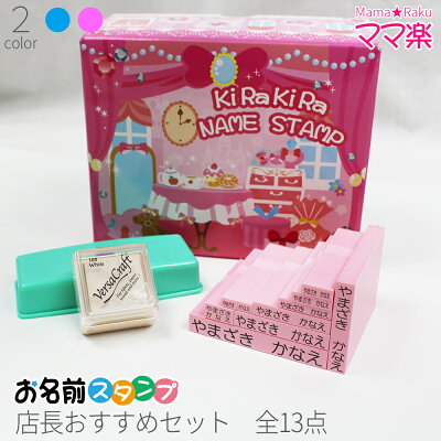 お名前スタンプ ママ楽 13点セット はんこ スタンプ おなまえ 入園 入学 子供 赤ちゃん おむつ おはじき 上履き オーダー ブルー ピンク