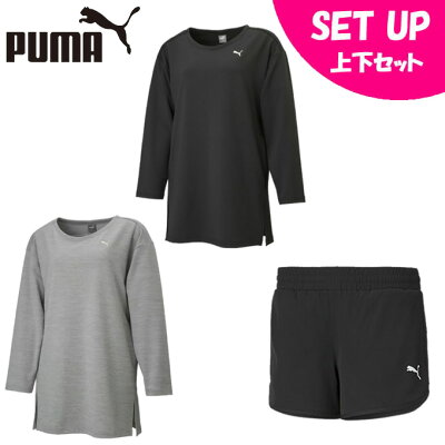 プーマ 長袖Tシャツ ショートパンツ セット レディース トレーニングカバーアップ+ACTIVE 4インチウーブンショーツ 520544+588935 PUMA